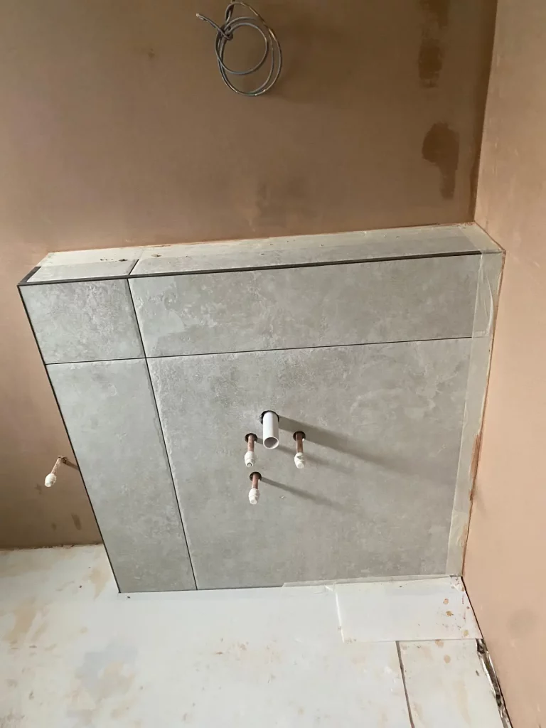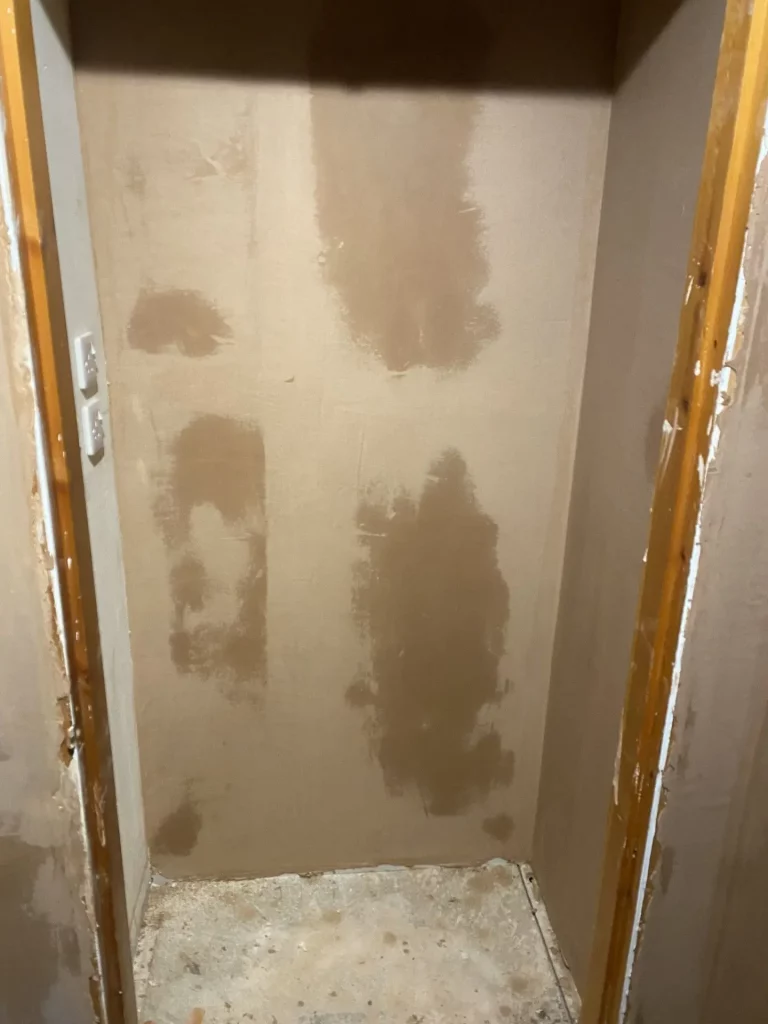 Precision plastering around a newly fitted cupboard during a full building renovation